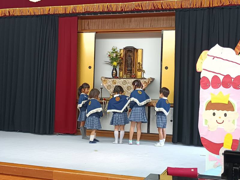 *宗教的な情操を培い、命の尊さや生きる喜びを大切に、力いっぱい頑張る子に育てる。