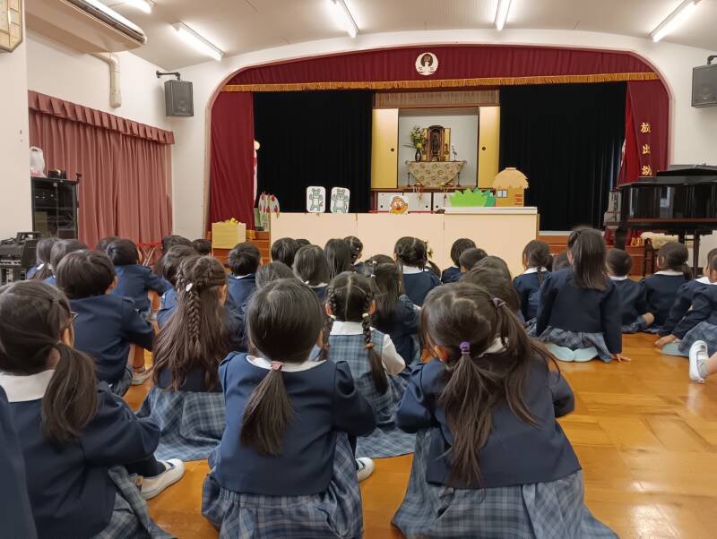 - 今日は本町にある南御堂での園児合同参拝でした。